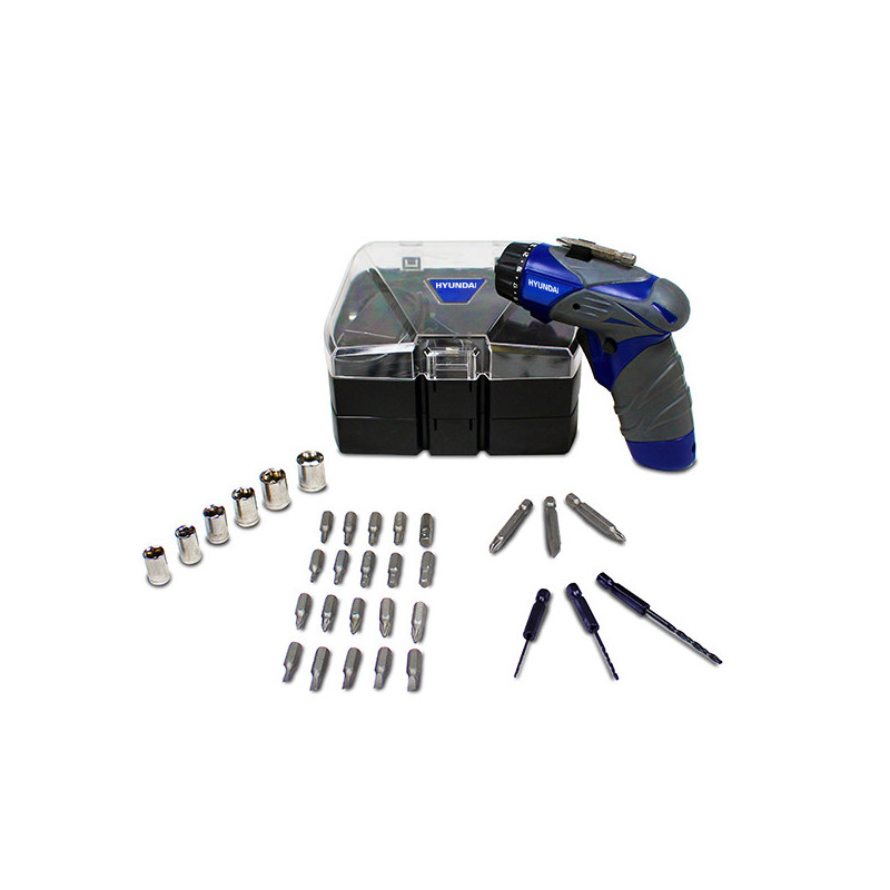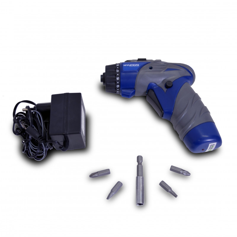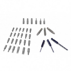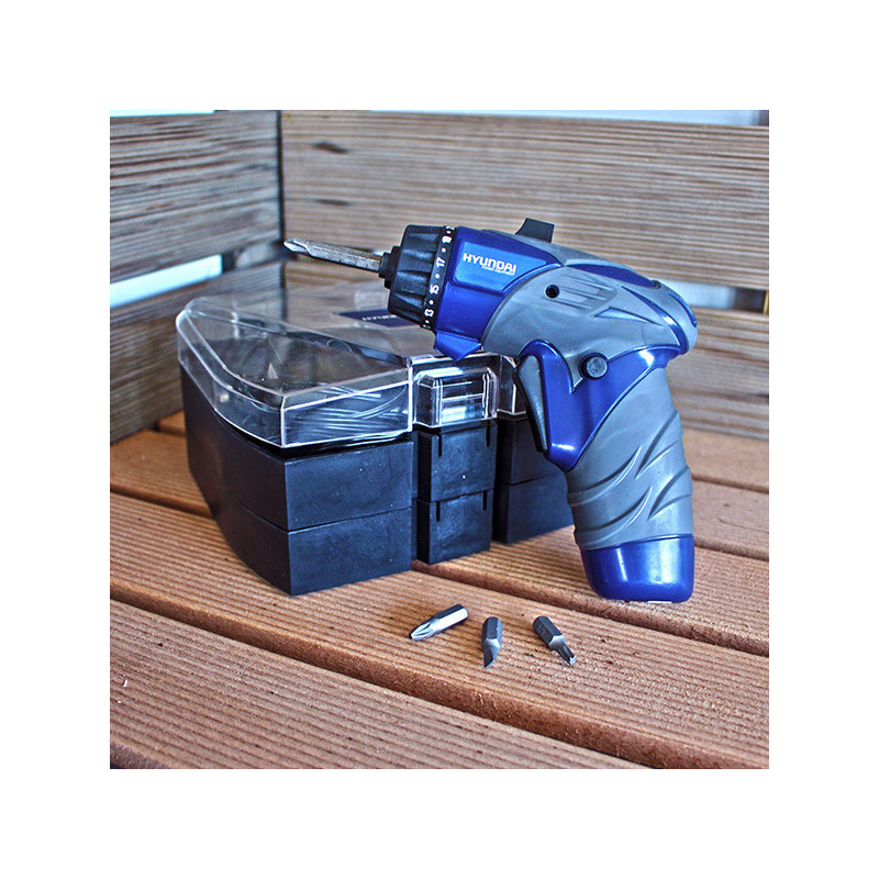 Alimentation (V) : 3.6 V Chargeur (h) : 3 - 5 h Chargeur Mèche : 3 Vitesse à vide : 200 tr/min Couple Max (Nm) : 3 Nm Moteur électrique Poignée soft grip Témoin de charge LED Porte-embout Embouts de vissage : 31 ( 28 x 25 mm & 3 x 50 mm) mm Douilles : 6 mm Réglage de couple : 23