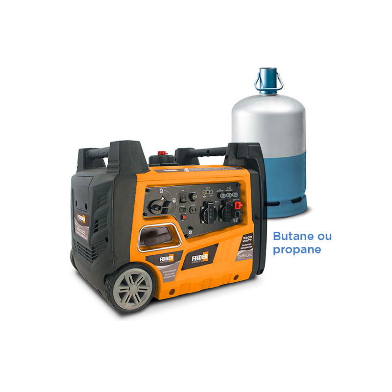 Le groupe electrogene gaz FGHi3500 est équipé de roues et de solides poignées de transport pour un déplacement facile et sans effort. Le groupe electrogene a gaz FGHi3500 est idéal pour partir l’esprit tranquille en camping-car, caravane ou yachting. Son autonomie est supérieure à 3 heures.