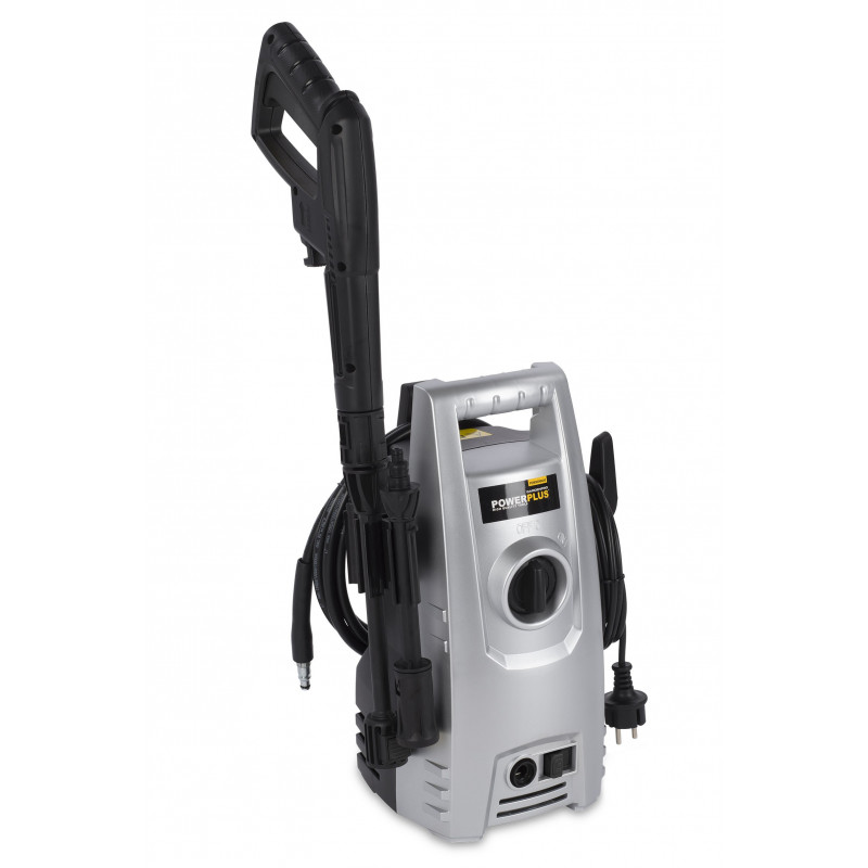 Nettoyeur haute-pression avec un moteur de 1400W et 105 bars de pression maximale. Livré avec 1 pistolet réglable avec connexion rapide, 1 bouteille de détergent, 1 connexion mâle et 1 tuyau 3 m. OFFERT : brosse plate et brosse rotative