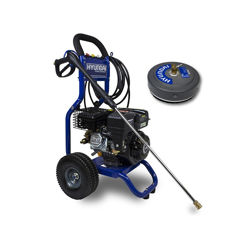 Ce Nettoyeur haute-pression thermique de marque Hyundai à une pression maximale de 220 bars et est livré avec une brosse terrasse ainsi que d'autres accessoires.